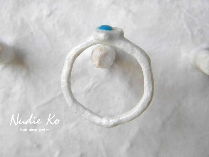 和紙の白とターコイズブルーの色合いがさわやかで、とっても軽いリングです。