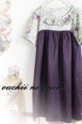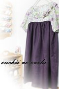オーバーで胸の上の切り替えが優しい雰囲気のシルエットをつくって素敵です。またリバティで襟元の巻きロックフリル仕上げにしておりますので
