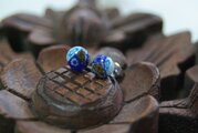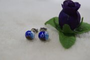 落ち着いた色です直径1.5ミリ程の花柄のガラスを3つ合わせて焼きました。