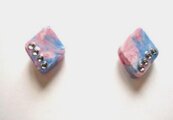 樹脂粘土でPinkとBlueのマーブル柄を作り、スクエア型にデザインした可愛いラインストーンのポイントピアスです。