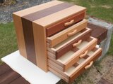 引き出しの前板は上から・・・南洋サクラ・ホワイトオーク・ブラックウォールナッツ・ヨーロッパビーチ・チーク