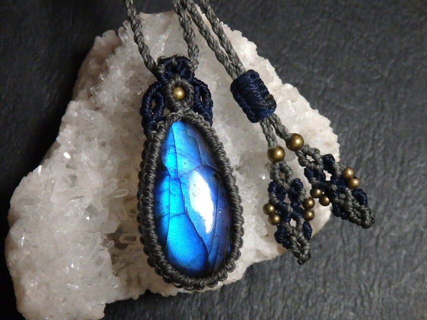 .·˖*✩⡱手のひらの宇宙。/ ラブラドライトマクラメペンダント