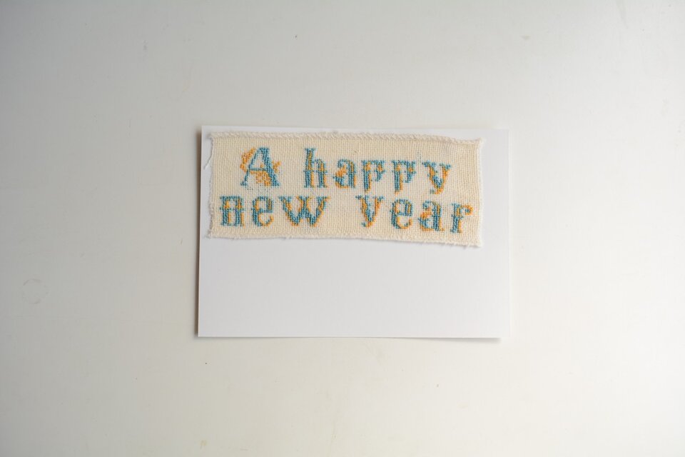 クロスステッチをポストカードに貼り付けた年賀状です。