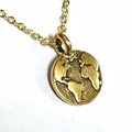 アメリカ製の アンティックゴールド色の 地球のモチーフ(ピューター製 17mm)を輸入して、ネックレスにしました。