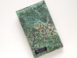 リバティの人気生地、デビッドジョー David Joe(グリーン)とハーフリネンの生地で新書本サイズのブックカバーを作りました。