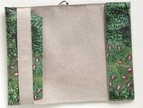 生地の色は地の色が、グリーン、木々や花の色にブラウン、パープル、マスタードイエローなどが使われています。