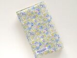 配色は地の色がオフ、花と葉がライトモスグリーン、ミントグリーン、スカイブルー、ブルー、ライトピンク、イエローなどです。