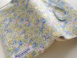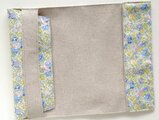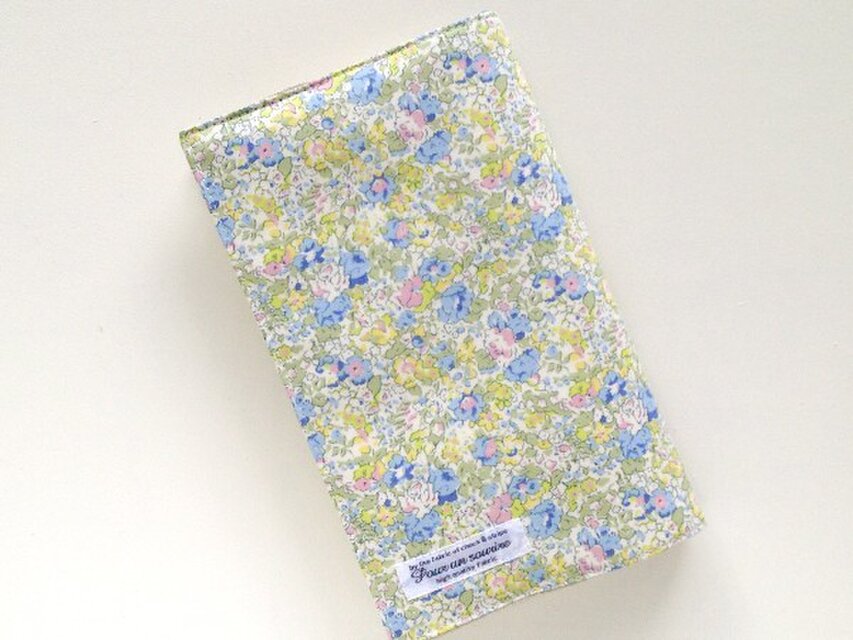 リバティの人気生地、クレアオード Claire-Aude(グリーンブルー)とハーフリネンの生地で新書本サイズのブックカバーを作りました。