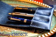 イタリアンレザー・帝王ブッテーロ・3本差ペンケース(紺)