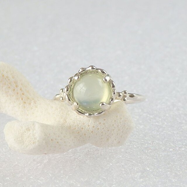 小粒の透明感がある可愛いプレナイトを華奢な粒飾りリングに仕上げました。