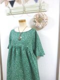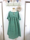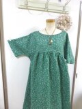リバティー風の小花柄リネン生地を使ってドルマンギャザーワンピースを作りました。