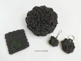 かぎ編みの薔薇モチーフを二枚重ね合わせた、両手に乗るサイズのポーチです。
