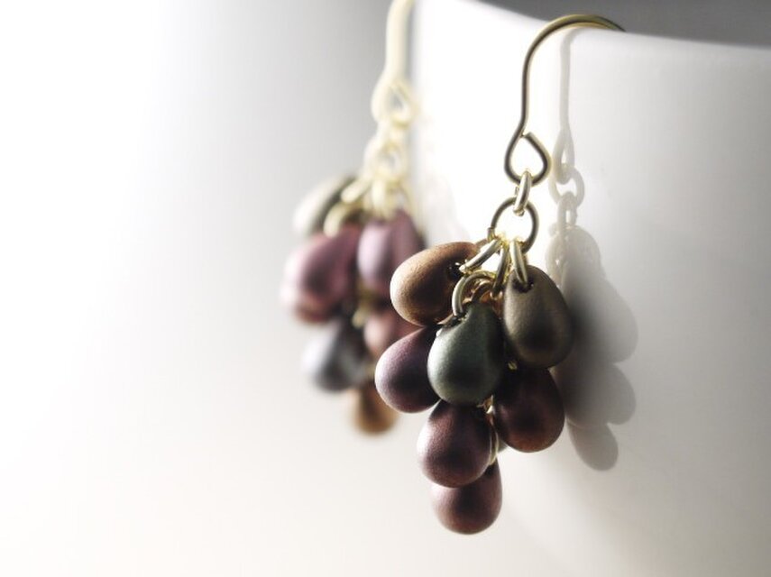 チェコ小粒ドロップのじゃらじゃらピアス 秋っぽい3
