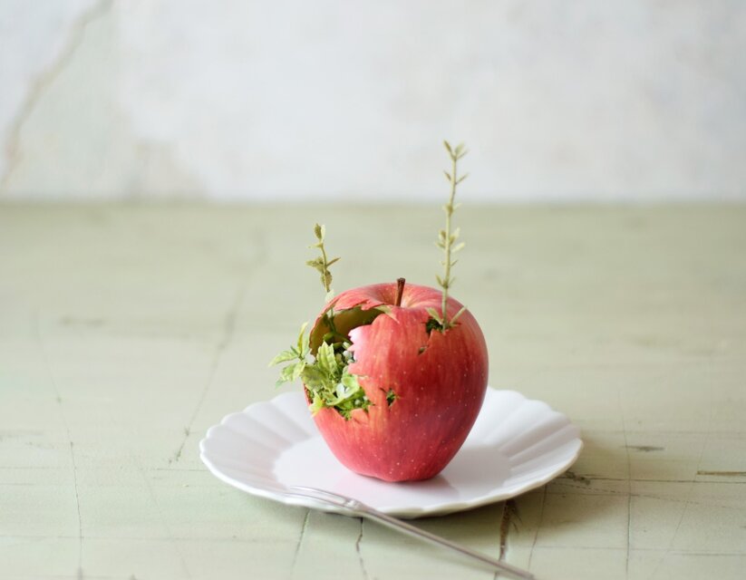 本物のりんごサイズです。底面には水抜き穴が空いています。