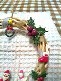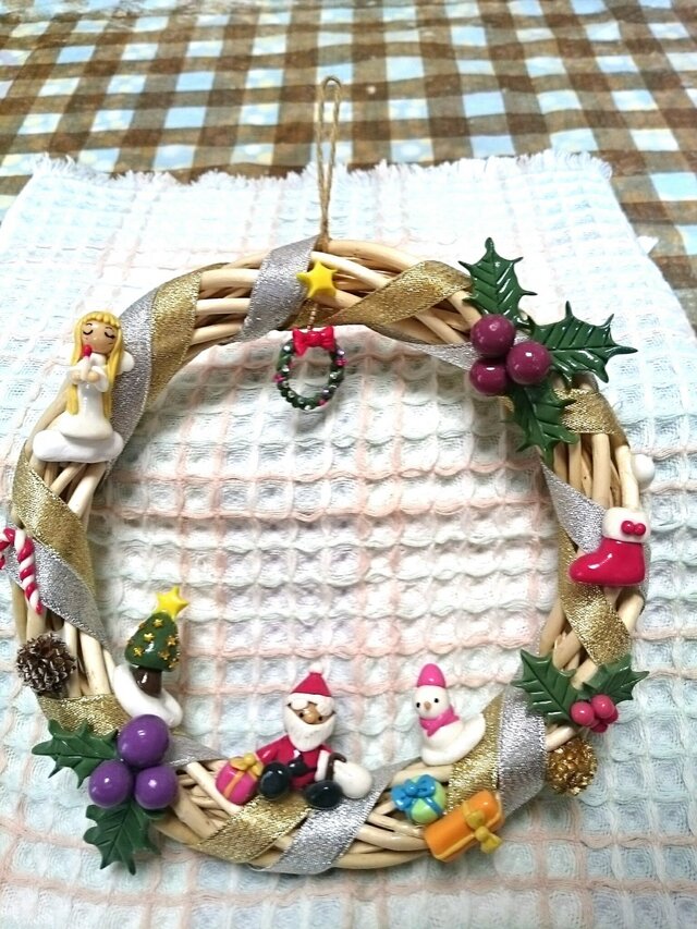 パン粘土でサンタや天使、小さなリースなども作りました。粘土の他にリボンやビーズなども使っています。