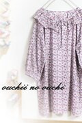 リバティタナローン Mauverina マウベリーナ パープル色で巻きロック仕上げのフリル襟リボンラグランロングブラウスを作りました。