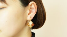 寄木のスクエアピアス・イヤリング