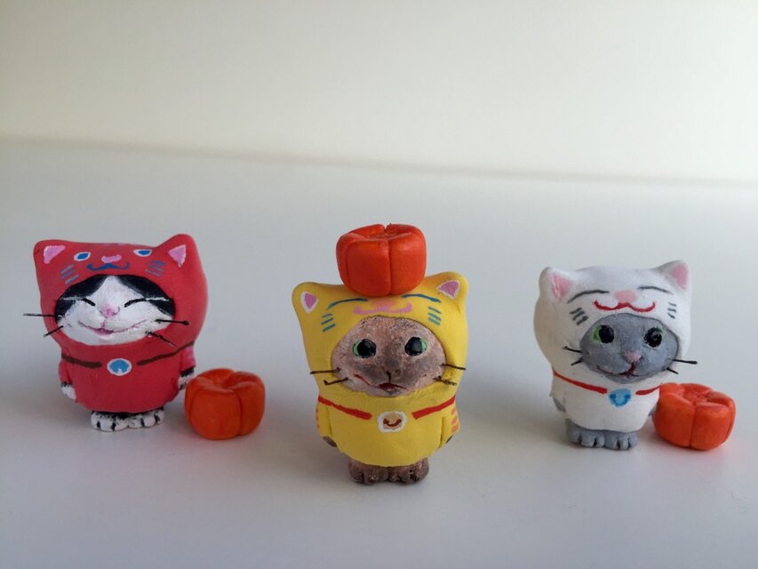 身長約3センチ、紙粘土製、アクリル絵具絵具で着色、ニスで仕上げてあります。送料無料です。