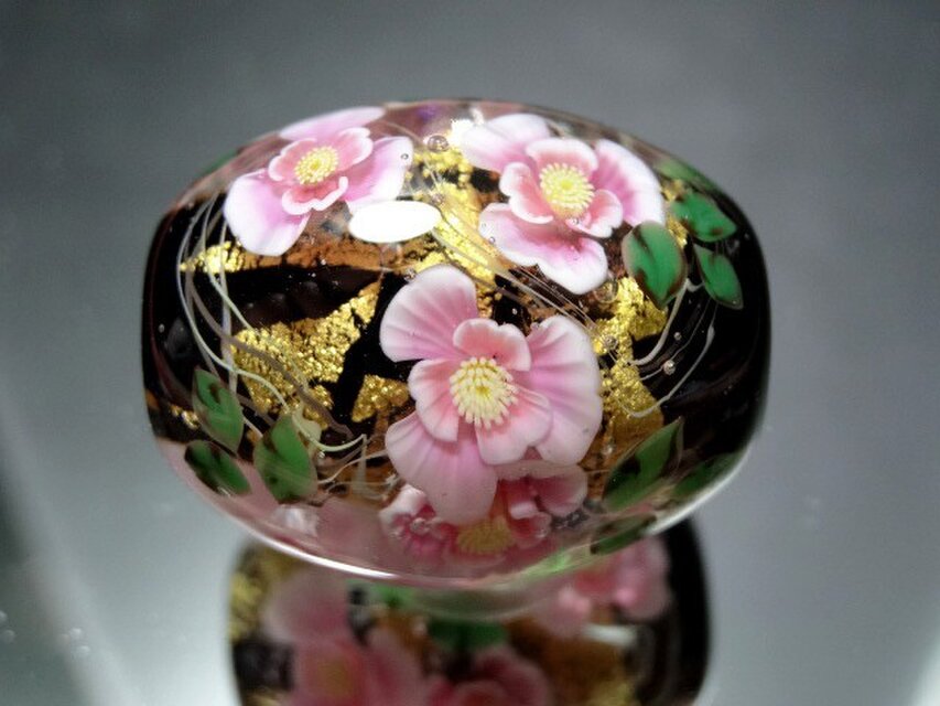 バーナーワークの技法で制作した、手作りのとんぼ玉です。
