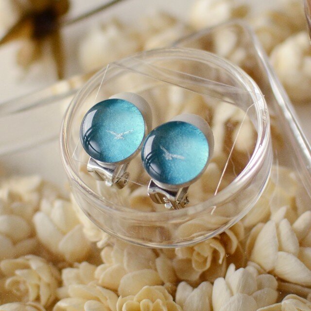 手描きのオリジナルイラストをレジンで閉じ込めたイヤリングです。