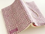 リバティの人気生地、スリーピングローズ Sleeping Rose(パープル)とハーフリネンの生地でビジネス書サイズのブックカバーを作りました。
