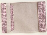 この生地は、皆川 明さん(ミナ・ペルホネン)のデザインで有名で、人気があります。ブロック上に並んだバラ、色彩がやさしくとても上品な柄です。 生地の地の色がオフホワイト、バラの色がライトパープル、葉の色がライトパープルです。