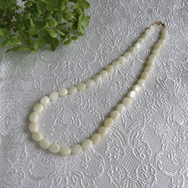 小判型の白さんごをつなぎ合わせて、シンプルなネックレスを作りました。