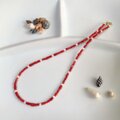 赤と白、2種類の天然さんごをつないだネックレス。