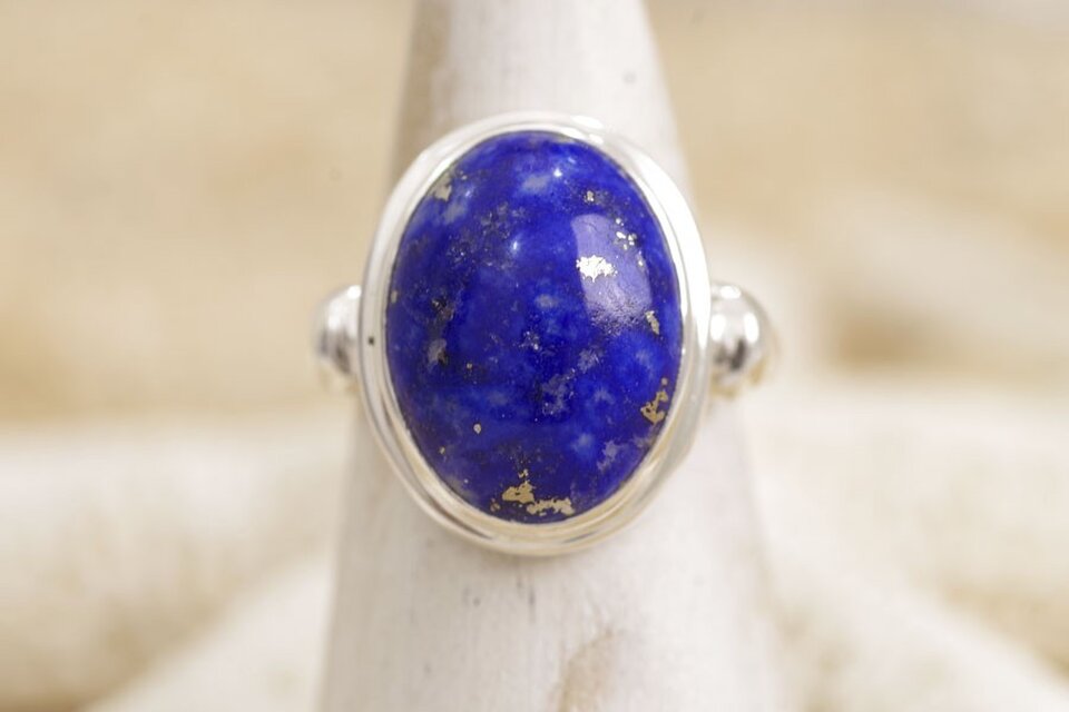 紺青色の黄鉄鉱(パイライト石)がちりばめられたまるで星が夜空にきらめいているような濃いブルーのラピスラズリ。ラピスラズリは日本では『瑠璃』と呼ばれ仏教の世界では七宝のひとつに数えられています。