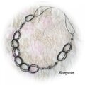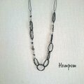黒のビーズで輪を作って繋げたボリュームのあるネックレスです。