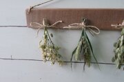 自家製ドライフラワーを古材風に加工した板にセットしました。