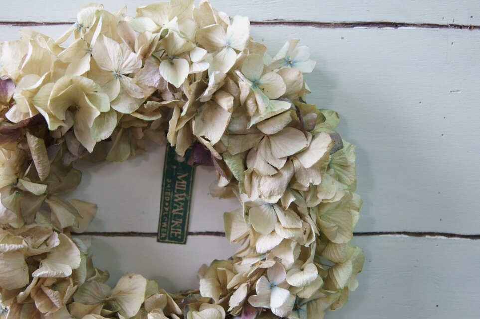 たっぷりのアンティーク感の強いアジサイだけでシンプルに制作しました。