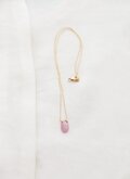 ベビーピンク、ペールピンクのサファイアはとてもデリケートな印象で、オフィスでも着けていただけるネックレス。チェーンもより繊細な作りのものを選びました。