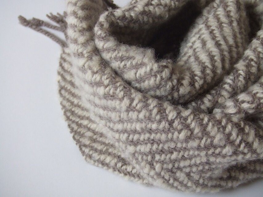手織りウール&シルクマフラー・・根雪