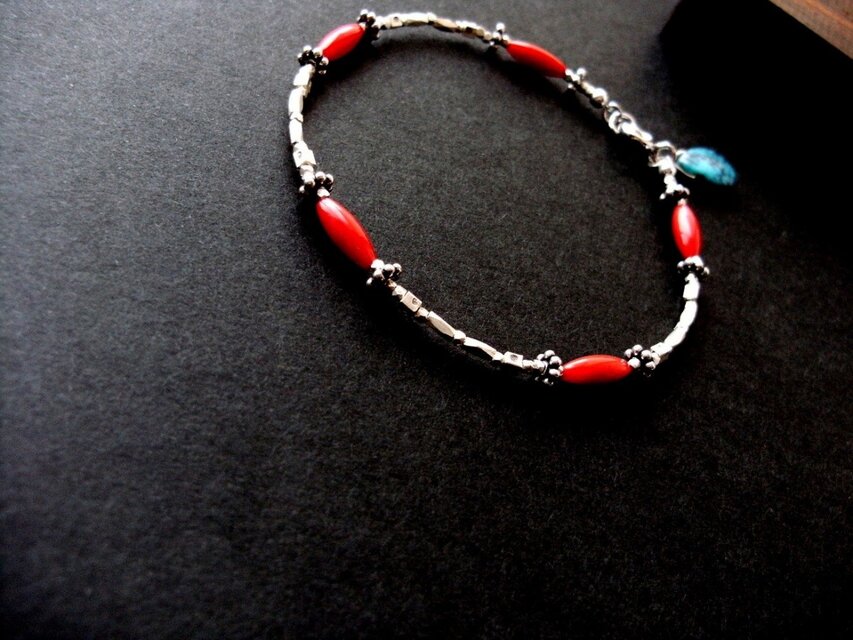濃赤が綺麗なコーラル(珊瑚)が映えるデザインです。