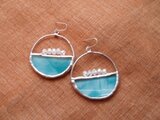 ステンドグラスにグラスビーズの飾りのついたピアスです。
