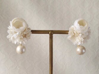 染め花とコットンパールのミニフープピアス(オフホワイト)PAPER MOON¥2,200 -