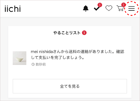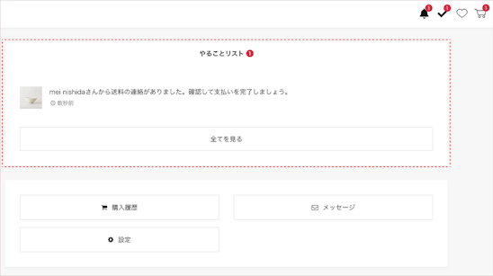 iichiからの情報やショップからのメッセージ通知などがベルマークの「お知らせ」に表示されることで大切な情報をより見逃しにくくなり、スムーズにご確認いただけるようになりました。