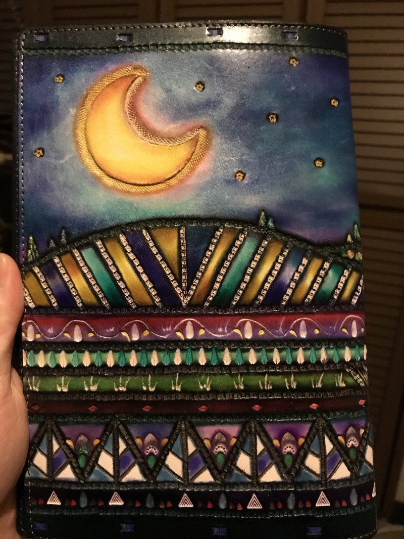 文庫サイズブックカバー 刻印,拭き染め 牛革