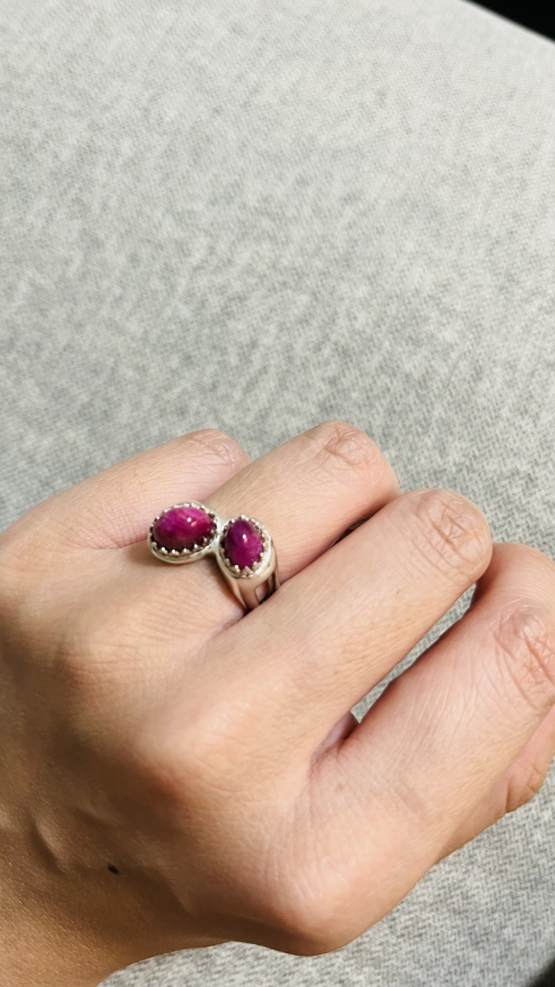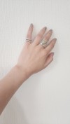 珍しい石の組み合わせでとても個性的なリングです✨もう少し小ぶりなものを想像していましたが、とてもボリュームがあります!でも着けてみるととてもしっくりくるので不思議です。おしゃれなリングが似合うよう精進せねば…(笑)手書きのお手紙、ありがとうございました。