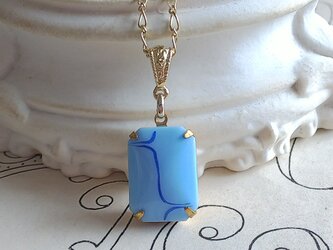 ヴィンテージ Blue薔薇と赤い椿のレクタングルGlassのネックレス¥8,210 -