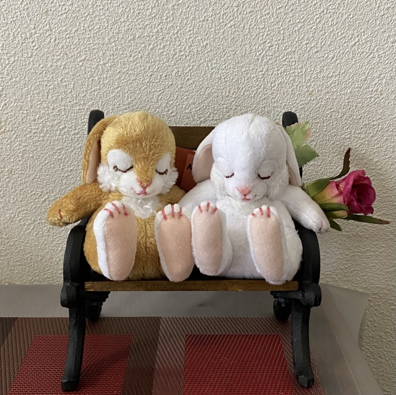 今回は白い眠りウサギをいただきました。とても丁寧な作り、本来の動物の雰囲気を壊さないで大変可愛らしくデザインされているのが素晴らしいです。魅力にあふれたウサギさんです。
