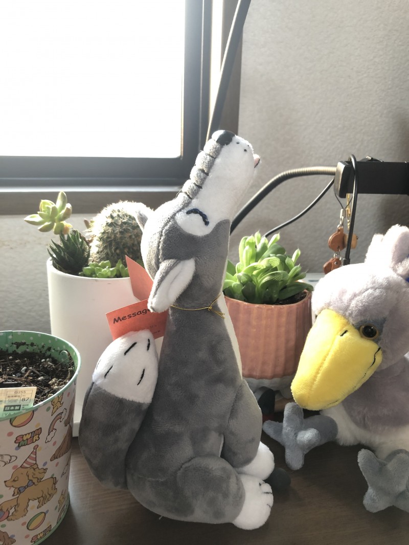 メサージュさんの作品に出逢うきっかけとなった念願のオオカミさん、後ろ姿まで可愛くてほれぼれしてしまいます。ちゃんと座ってくれるし、これからはいつでも一緒にいられます♪ありがとうございました♡