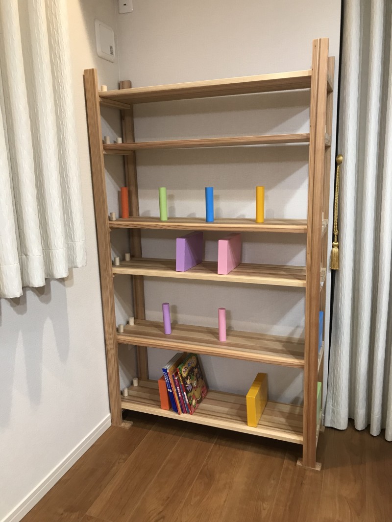 組立も工具なしで作成出来るよう工夫して下さり、重さも重過ぎず、サイズもぴったりでオーダーでき本当に満足です。子供の絵本、アルバムと沢山収納でき、この棚のおかげで部屋が可愛いです!他にない素敵なデザインだと思います^_^