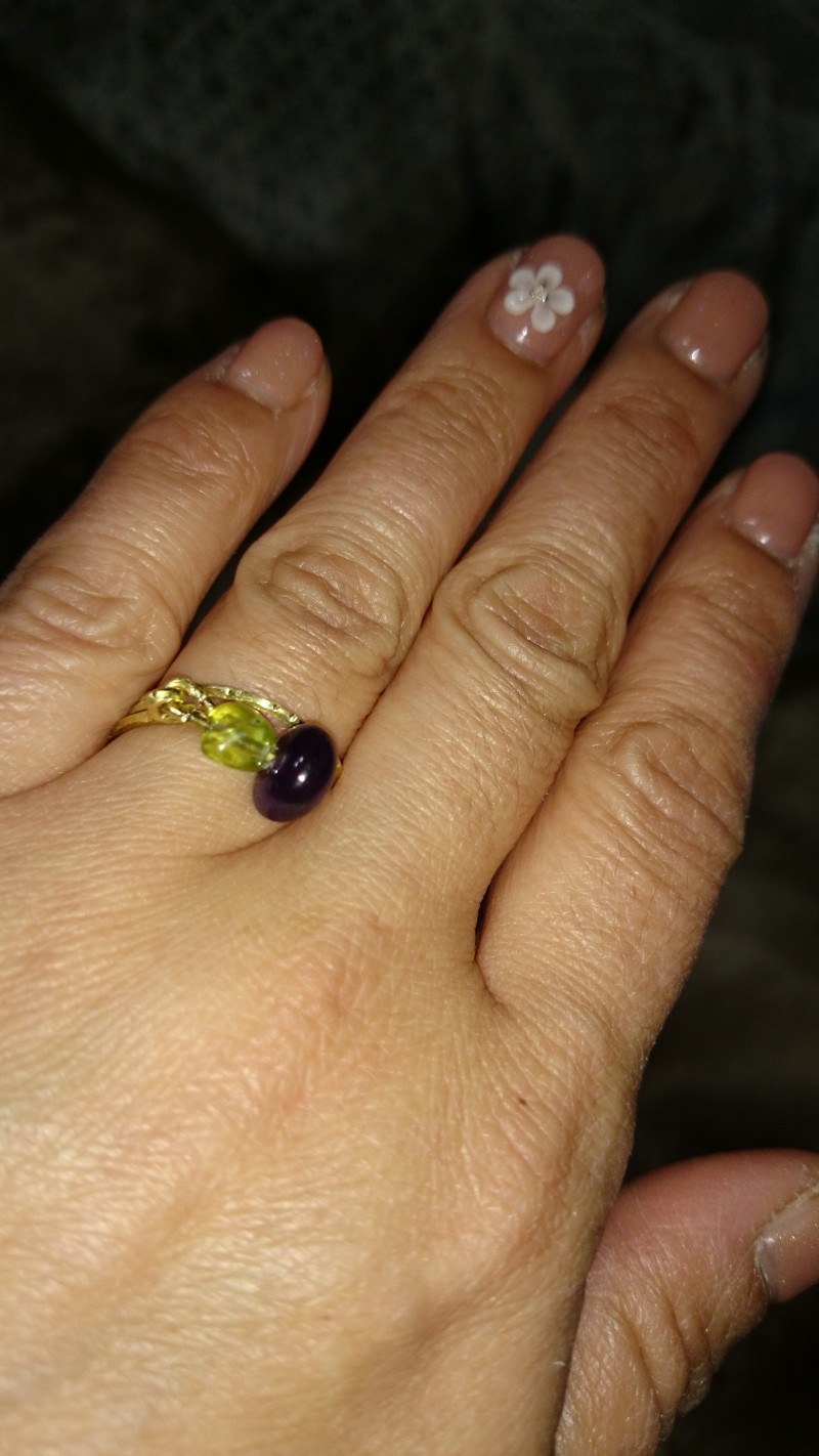 クラフトな雰囲気 真鍮リング アメジスト&ペリドット