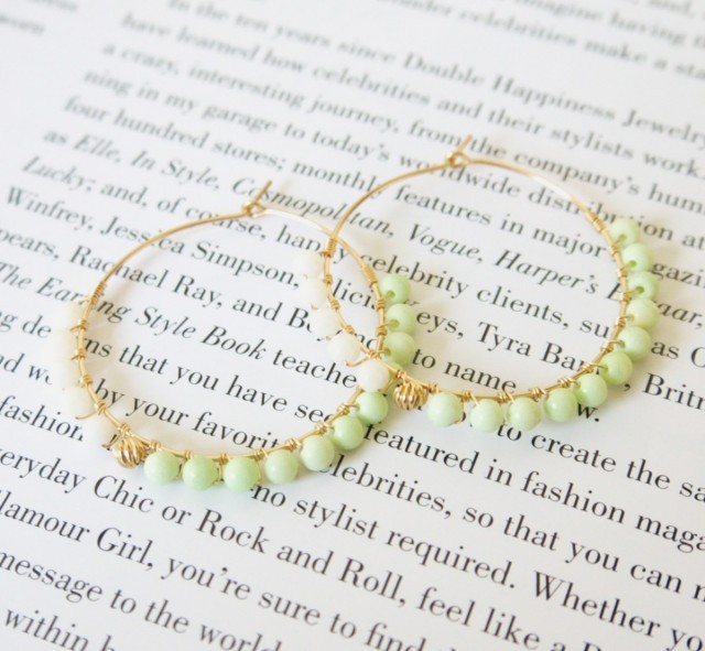 〈14kgf〉ピンク珊瑚とアマゾナイトのフープピアス