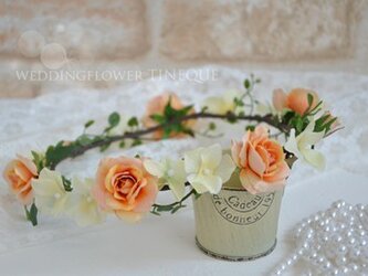 ナチュラル可愛い【花冠】 オレンジローズ×ツタ¥4,000 -