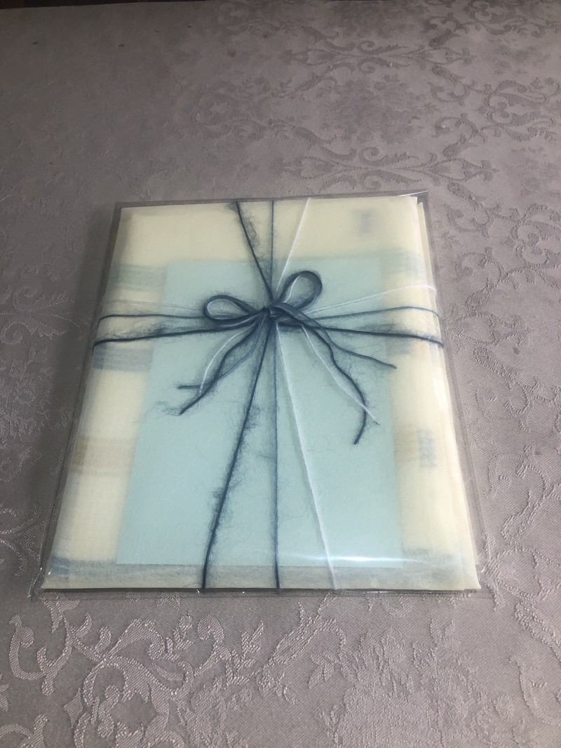 先ほど届きました。皆さんがラッピングのコメントされていましたが、本当に素敵なラッピングでした。お品も、模様の複雑さに加えて手織りの柔らかさもあり、とても素敵です。しばらく眺めて過ごします。