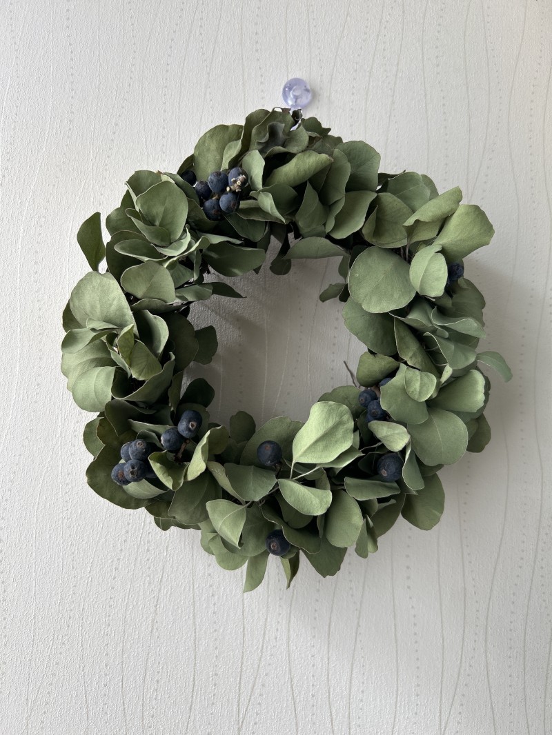 季節に関係なく長く飾れる!ユーカリのシンプルリース20〜実ものを合わせて〜