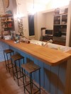 最初大きいかな、とサイズオーダーも考えたのですがこのままのサイズで正解でした。鍋や大物の収納に便利だし、低い部分には小物や調理器具をしまうのに丁度いいです。作業台は使いやすい広さと高さ。キッチンがこれひとつで使いやすくなりました。木目や鉄の部分の風合いも味があって作業に使うたんびに惚れ惚れします。また機会があれば他のお品も揃えたいです。丁寧に制作していただいてありがとうございました!